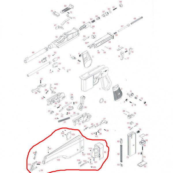 Factory standard replacement stock for WE M712 GBB Pistol. Faux Wood style