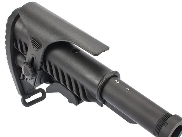 APS Shark Style Airsoft M4 Retractable Stock w/ Stock Tube and Cheek Riser – Black