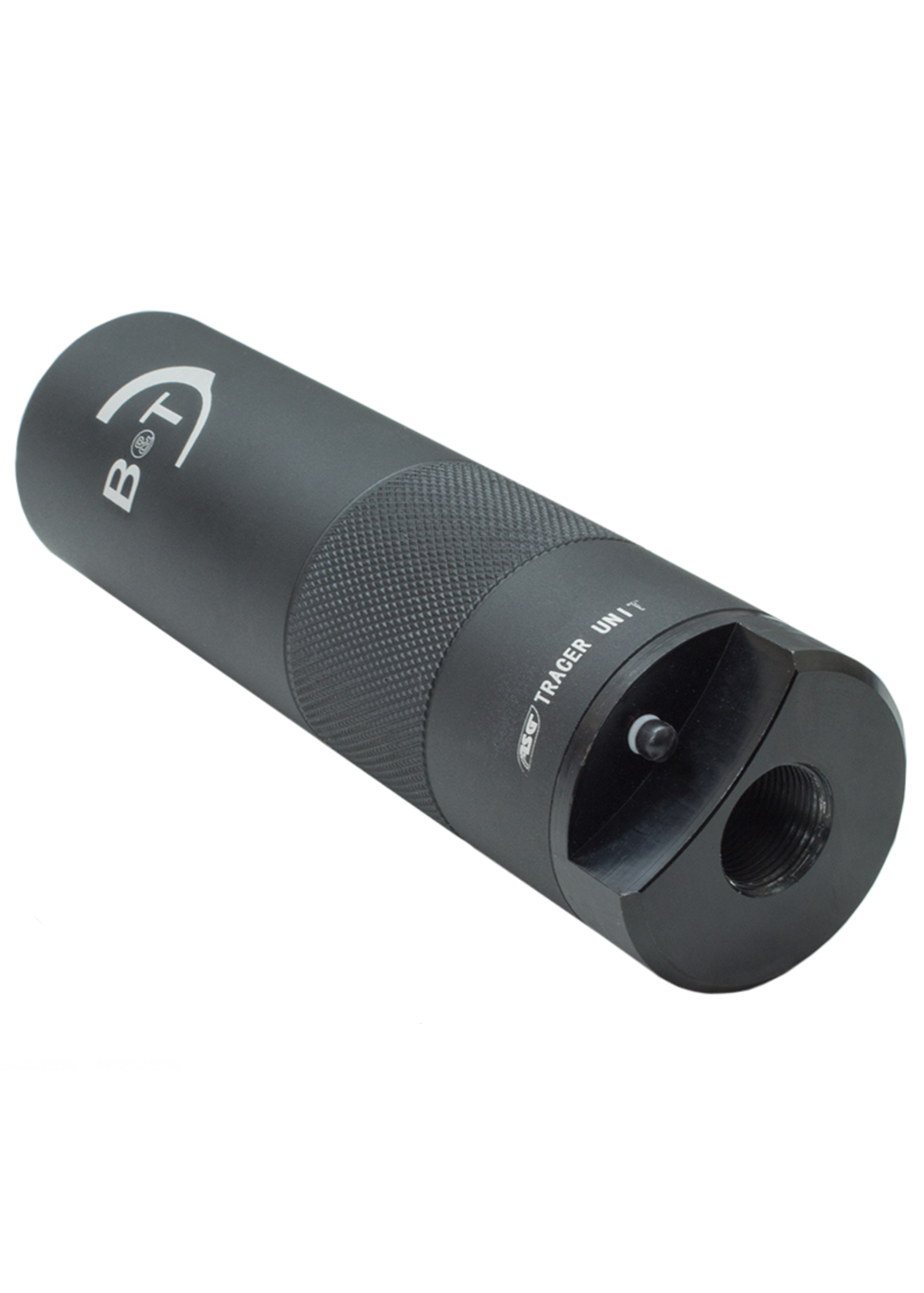 ASG B&T tracer unit with a 14mm CCW thread, easy to operate on / off button switch and textile outer for easier fitment onto your Airsoft RIF. Powered by 4xAAA batteries (not included) you can glow up your tracer rounds for days at a time! Excellent build quality and one of the most reliable tracer units we have used ourselves. Works with Semi and Full auto rifles and acts as a minor “suppressor” at the same time as firing “flubber” at your enemy.
