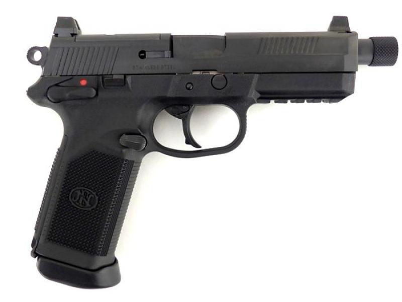 Improving on the FNP™-45 Tactical, developed for the U.S. Joint Combat Pistol Program, the FNX™-45 Tactical is the latest in technological advancements in handgun engineering, offering .45 ACP performance and a host of unique features that no other handgun can match. The checkered polymer frame is offered in Black and Flat Dark Earth and has a low-bore axis for reduced felt recoil and enhanced operator control. Interchangeable backstraps are available to quickly customize the grip feel. All operating controls are fully ambidextrous for ease of use. The 5.3″ barrel has a threaded muzzle to accept sound suppressors, compensators and other accessories. The slide has high-profile combat sights.