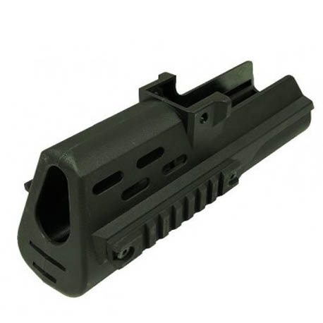 Replacement hand guard for G36C AEGs, allowing the addition of Weapon Tactical Accessories via 3 20mm RIS Rails. Just like the real handguard this replica is based on, the G36 M011 is constructed from Polymer, resulting in a Lightweight yet extremely Durable piece of equipment. The Handguard features three 20mm RIS Rails, along the Lower and Side surfaces. These are an incredibly convenient way of Securely mounting all manner of Weapon Accessories onto your G36C, from Foregrips to improve Ergonomics and Stability, to Laser / Light Modules for Illuminating targets in dark environments. The 20mm Rails are also Removable. The hand guard replaces the standard handguard which comes with your AEG, and is held into place using the same pin and the origional. This is the perfect purchase for any Airsoft Skirmisher with a G36C AEG, who feels like Weapon Accessories could improve their performance on the Skirmish field could be enhanced.
