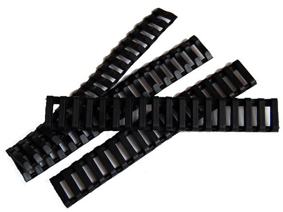 Set of rail panels which can be cut to size to give you a better grip on your Airsoft 20MM RIS / RAS Rail set. The grips are constructed from durable rubber providing a grippy surface. The rail panels are designed to provide a more comfortable grip on your Weapon when not using gloves. This rail cover set is perfect for those who are missing that final subtle finish to their Airosft AEG.