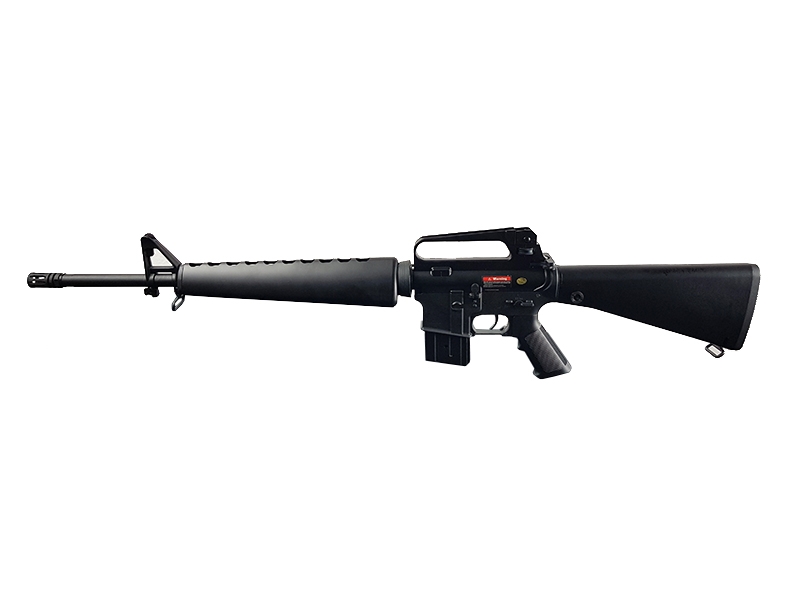 Golden Eagle’s M16A1 is an airsoft weapon is based of the Colt M16 supplied to American troops during the Vietnam war. The gun is fitted with a fixed stock with plenty of room to fit a large battery pack.