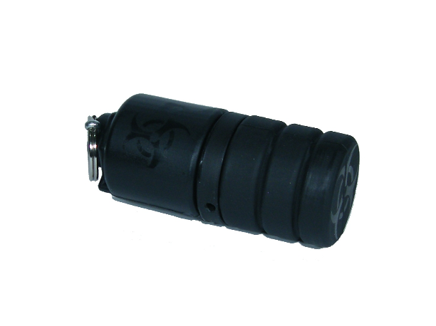 Kimera JR grenade. With its small size, Kimera JR is scheduled to go into pockets of grenade 40mm. Easy to refill the tank allows the use any projectile (ball, powder, paint, dye, water, …). So you can use it to mark areas or to empty a room of his players. It is highly advisable to use green gas. CO2 or Propane Gas could damage the seals and the pomegranate, and do not have the right propulsive power. This grenade is sold in kit, so you will have to assemble yourself. This operation is very easy and you just need to follow the installation video. The Kimera JR grenade was designed for a very quick and easy use, completely reusable. The lower reservoir has a life of + – 100 explosions, before possibly changed. After a hundred uses, the grenade will still work but will be less noise. For a safe operation, here are the steps Procedure: – Check that the grenade is empty and gas content – Unscrew the lower part of the pomegranate – Push the red safety pin – Put the pin – Fill gas – Place the balls talques, dyes or others. – Screw the lower part – The grenade is armed – Pull the pin and throw firmly on a hard surface for optimal results On the top of the grenade, you have a hole for hanging the bottom with a single rope. Thus, it will save you from having to search the bottom.