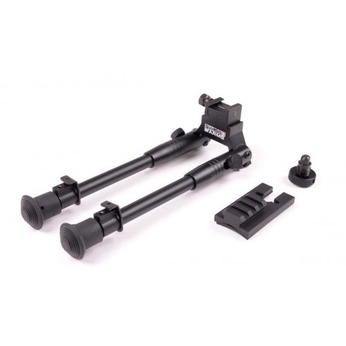 This foldable bipod lets you steady your gun for a clean shot. The bipod has a plastic mount with plastic legs, and it’s rubber feet easily grip surfaces so you can concentrate on your targets.